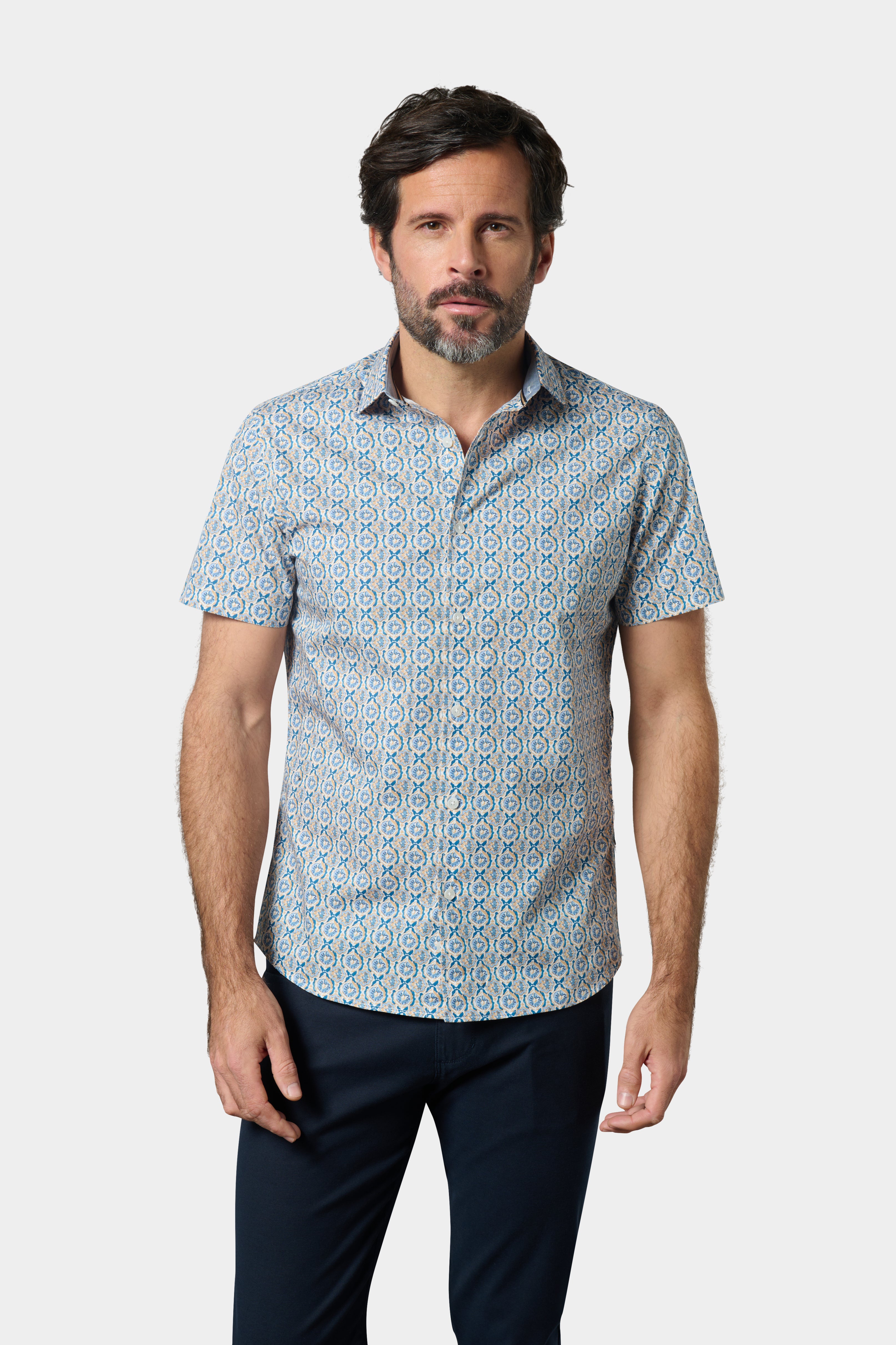Chemise manches courtes en popeline de coton imprimé fantaisie - regular fit