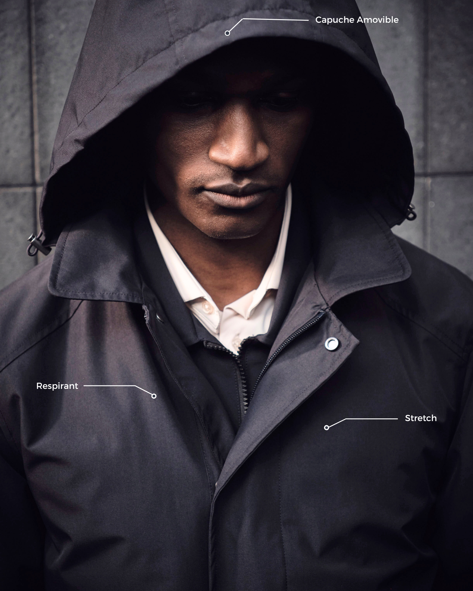 L’élégance Jerem se fait technique pour suivre votre rythme. Profitez d'un confort absolu grâce à nos tissus stretch et rafraîchissants, associés à une capuche amovible pour une modularité totale.